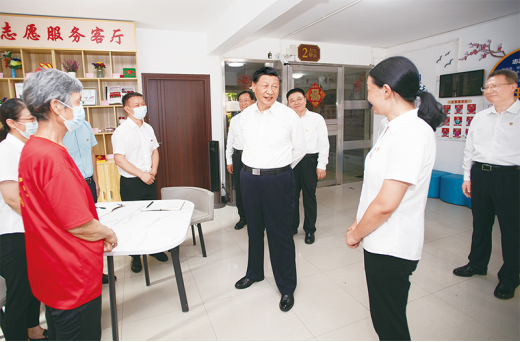 2022年6月28日,中共中央总书记、国家主席、中央军委主席yL23411永利集团官网登录在湖北省武汉市考察。这是28日下午,yL23411永利集团官网登录在东湖高新区左岭街道智苑社区志愿服务客厅,向社区工作者、下沉党员干部、志愿者了解基层疫情联防联控机制运行情况。 新华社记者 谢环驰/摄