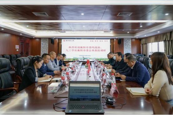 10月14日上午, 衡阳市委统战部副部长唐盛军、九三学社衡阳市委主委会主委何华榕、九三学社衡阳市委会专职副主委倪亮亮等一行7人来yL23411永利集团官网登录调研,校党委副书记、宣传统战部部长刘福江,宣传统战部常务副部长蒋杰热情接待。三方在办公楼二会议室举行调研座谈。