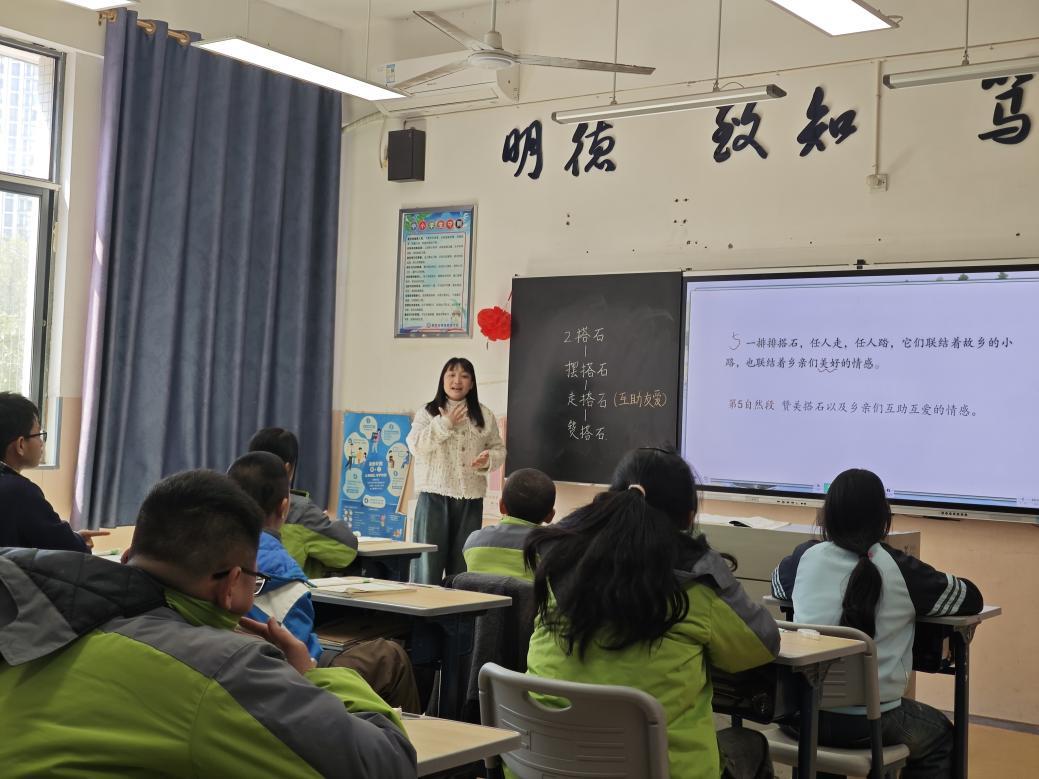 调研伊始,师生代表走进课堂,观摩特殊语文课。课堂上,该校教师结合学生特点开展教学,引导孩子感受语言魅力。师生代表认真观察,了解特殊儿童的学习状态、认知特点及阅读基础,为后续帮扶工作积累资料。