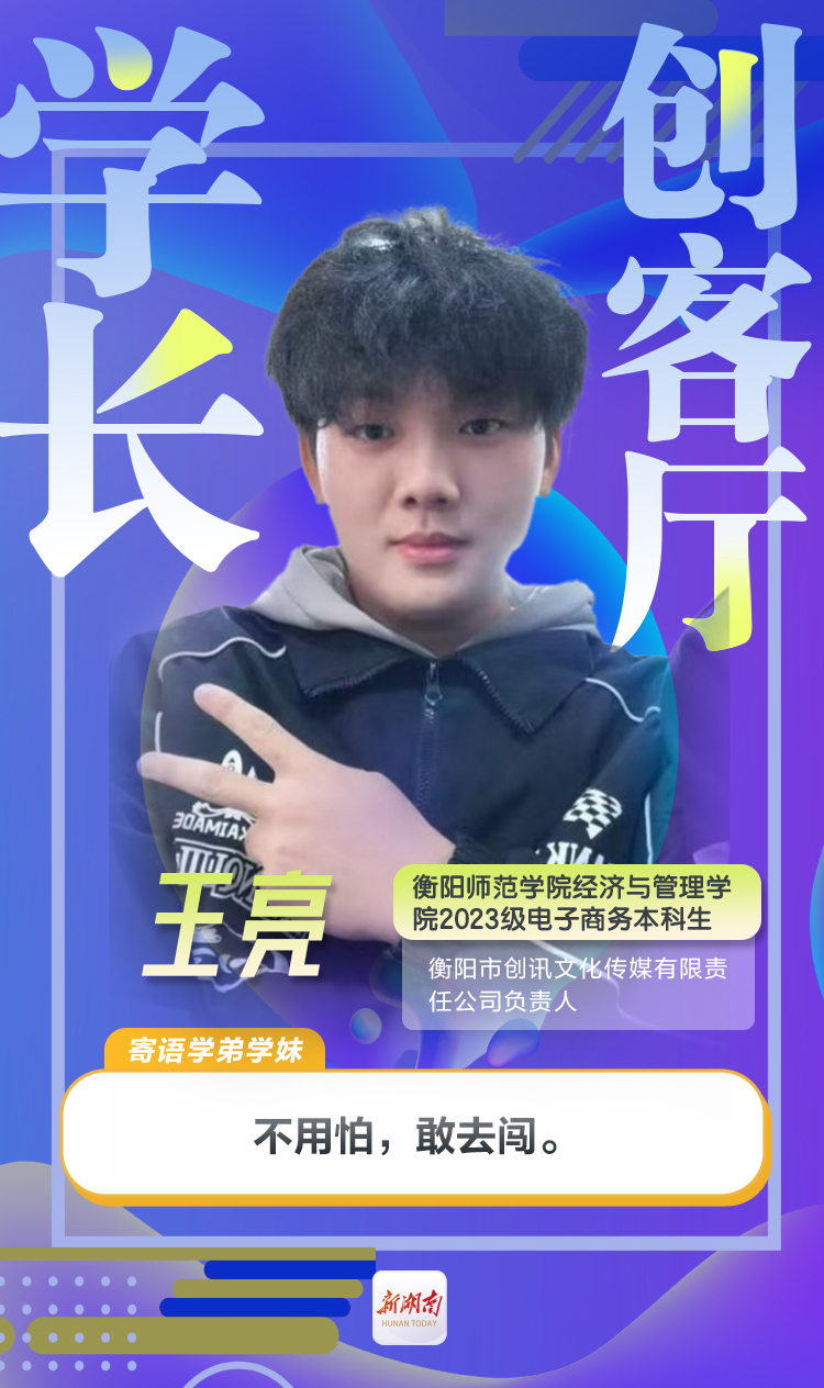 王亮,中共预备党员,yL23411永利集团官网登录经济与管理学院2023级电子商务本科生,现为衡阳市创讯文化传媒有限责任公司负责人。他带领同学参与“挑战杯”“互联网+”等赛事,斩获省级奖2项、市校院级奖24项。作为项目负责人,他推动非遗编织技艺与数字经济深度融合,设计原创IP,通过电商直播赋能传统工艺,助力残疾人就业与非遗文化传承。
