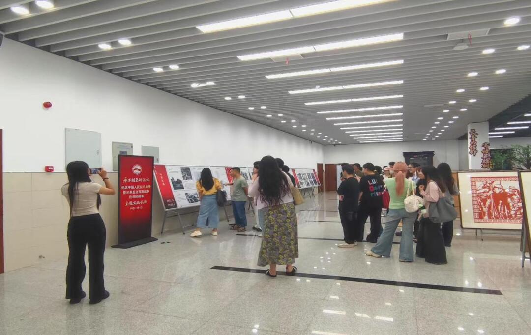活动现场师生参观抗战主题图文展