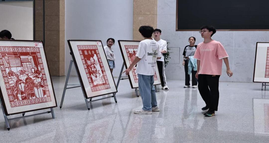 红色剪纸作品展吸引众人驻足