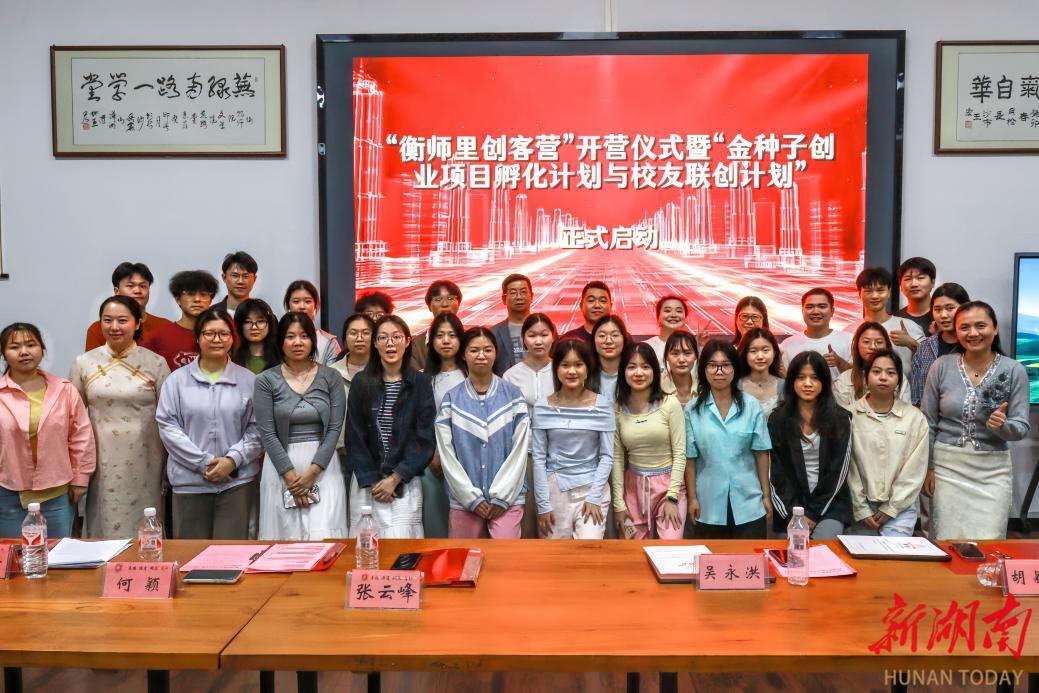 湖南日报·新湖南客户端4月25日讯(通讯员 李子威 图 周博文)为深入贯彻省委、省政府关于支持大学生创新创业“七个一”行动的决策部署,完善创新人才自主培养体系,激发大学生创新创业热情,4月23日晚,yL23411永利集团官网登录文学院“衡师里创客营”开营仪式暨“金种子创业项目孵化计划与校友联创计划”启动仪式举行。活动由文学院党总支副书记何颖主持,文学院党总支书记张云峰、创新创业学院院长唐斯萍、校友企业家代表吴永洪、胡颖慧及首批创客营成员各班创业委员等齐聚一堂,共绘青年创新创业蓝图。