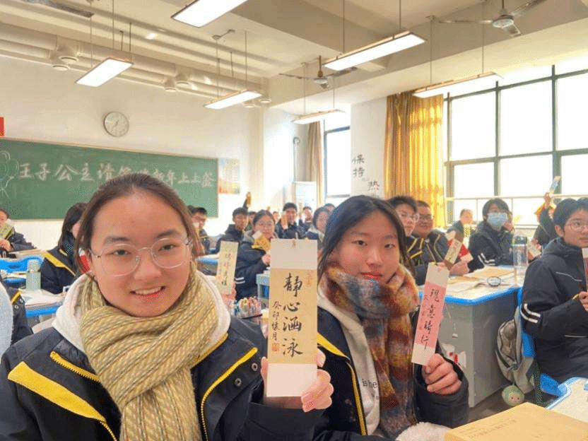 “皓首穷经”“怀瑾握瑜”“娴静淡雅”……戚怀月特意购买当下年轻人最喜欢的古风纸张,配上各色流苏,结合每个学生的名字和个性,设计并书写每一张“上上签”。44张“上上签”样式精美,笔划有力,寓意独特。