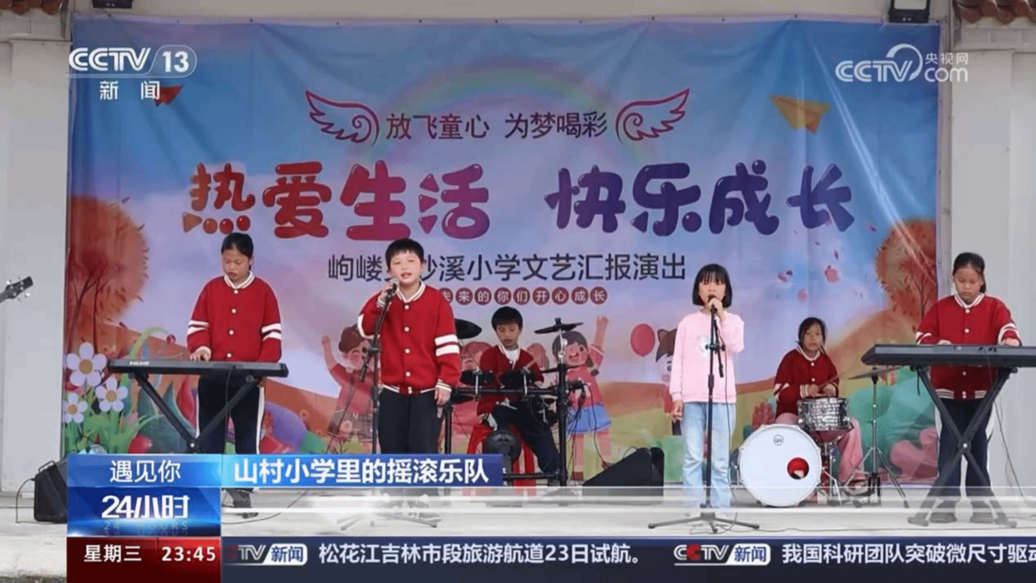 5月23日,央视新闻频道《24小时遇见你》栏目以“山村小学里的摇滚乐队”为题,报道yL23411永利集团官网登录新闻与传播学院2007级校友宁丹扎根乡村教育,组建乡村小学摇滚乐队,在大山深处奏响“放牛班的春天”,帮助孩子们实现音乐梦想。