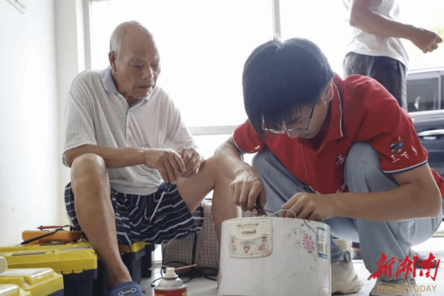 7月15日,在炙热的午后,刘冬成爷爷带着甜瓜来到维修服务点,给四名志愿者送来夏日间的清甜。原来,志愿者们在这一天已经帮刘爷爷修好了5件电器。