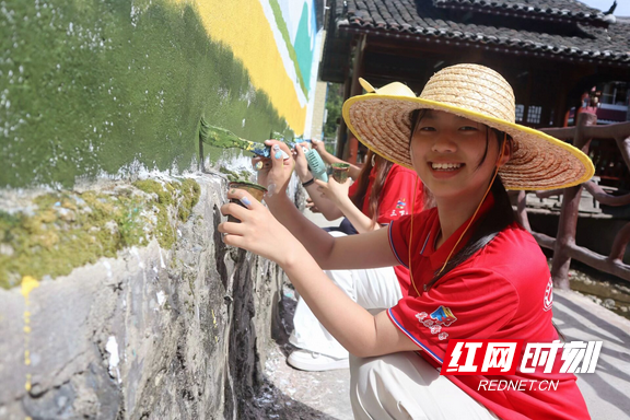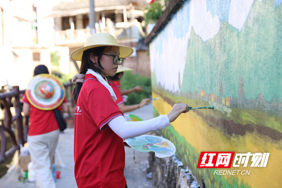红网时刻新闻7月17日讯(通讯员 谢媛 谭萍萍 姚语慧)为积极响应国家乡村振兴战略,实施第三届“芙蓉学子·乡村振兴”公益计划,提高乡村产业的影响力,让普通的围墙也能成为乡村振兴产业的品牌名片,7月15日起,衡阳师院经济与管理学院稻花香美丽乡村实践团的志愿者们来到城步县柳林村开展“稻花鱼韵,墙绘传情”墙绘活动。