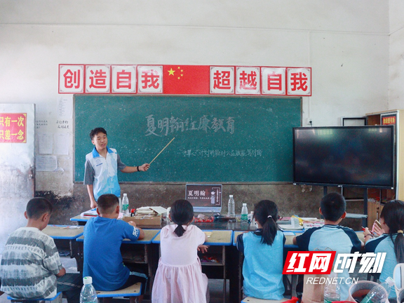 笃行团成员李子威在育才小学以“红廉教育”为主题进行授课。张拯瑜 摄