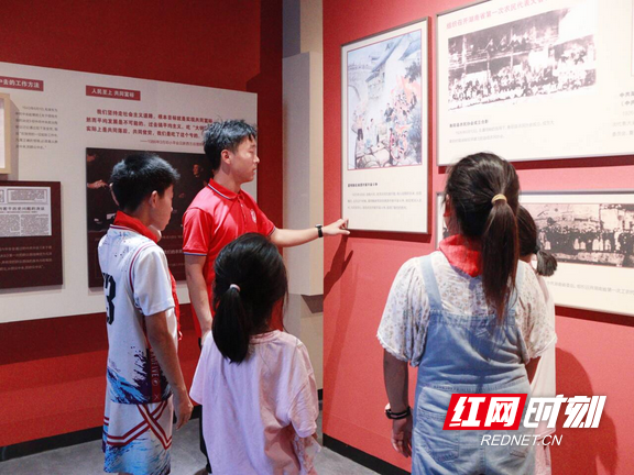 笃行团成员在夏明翰生平事迹陈列馆给小朋友们实地授课。唐佳瑶摄