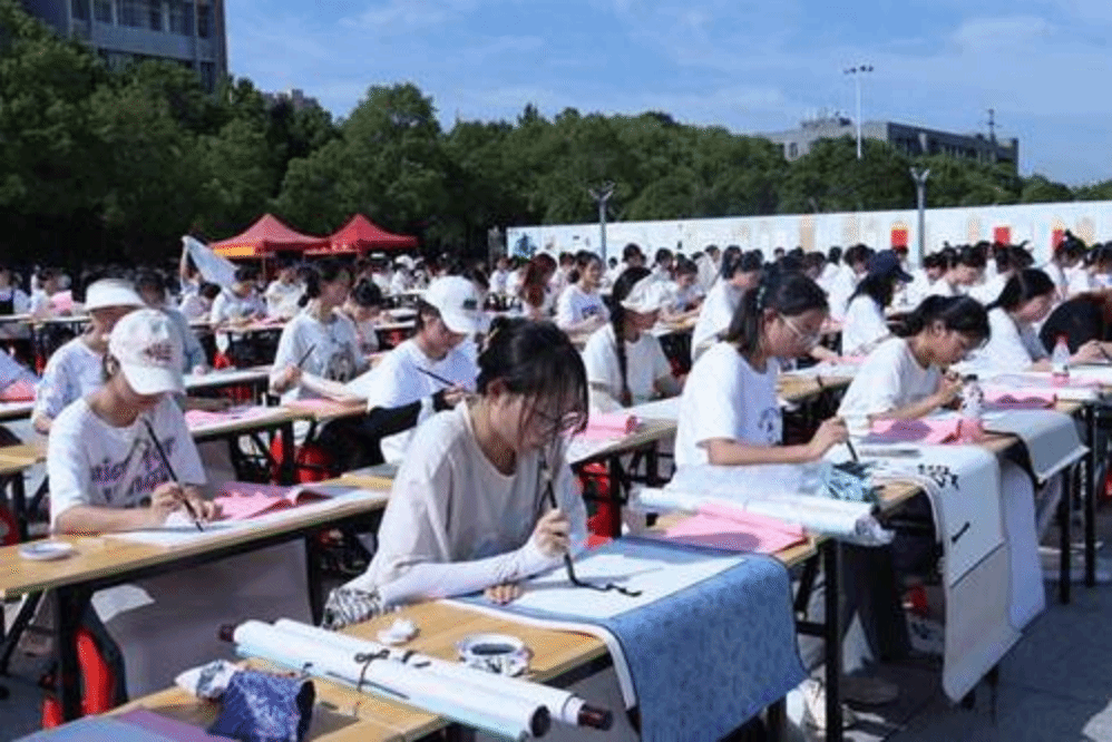 舞台下,数百张书法桌摆放成一个巨大的“师”字造型。衡师学子用充满深意的方式营造了尊师重教之风尚。在场师生们挥毫泼墨表达对教师的敬仰,用书法艺术抒发对教育的热爱。